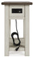 | Details | Made of wood, white oak veneers and engineered wood, Two-tone (weathered gray and antique white) finish, Chairside end table features plank-styled top, Smooth-gliding drawer perfect for holding remotes and more, Integrated 110V power supply with dual USB charging ports, Black faceted hardware, Assembly required | |