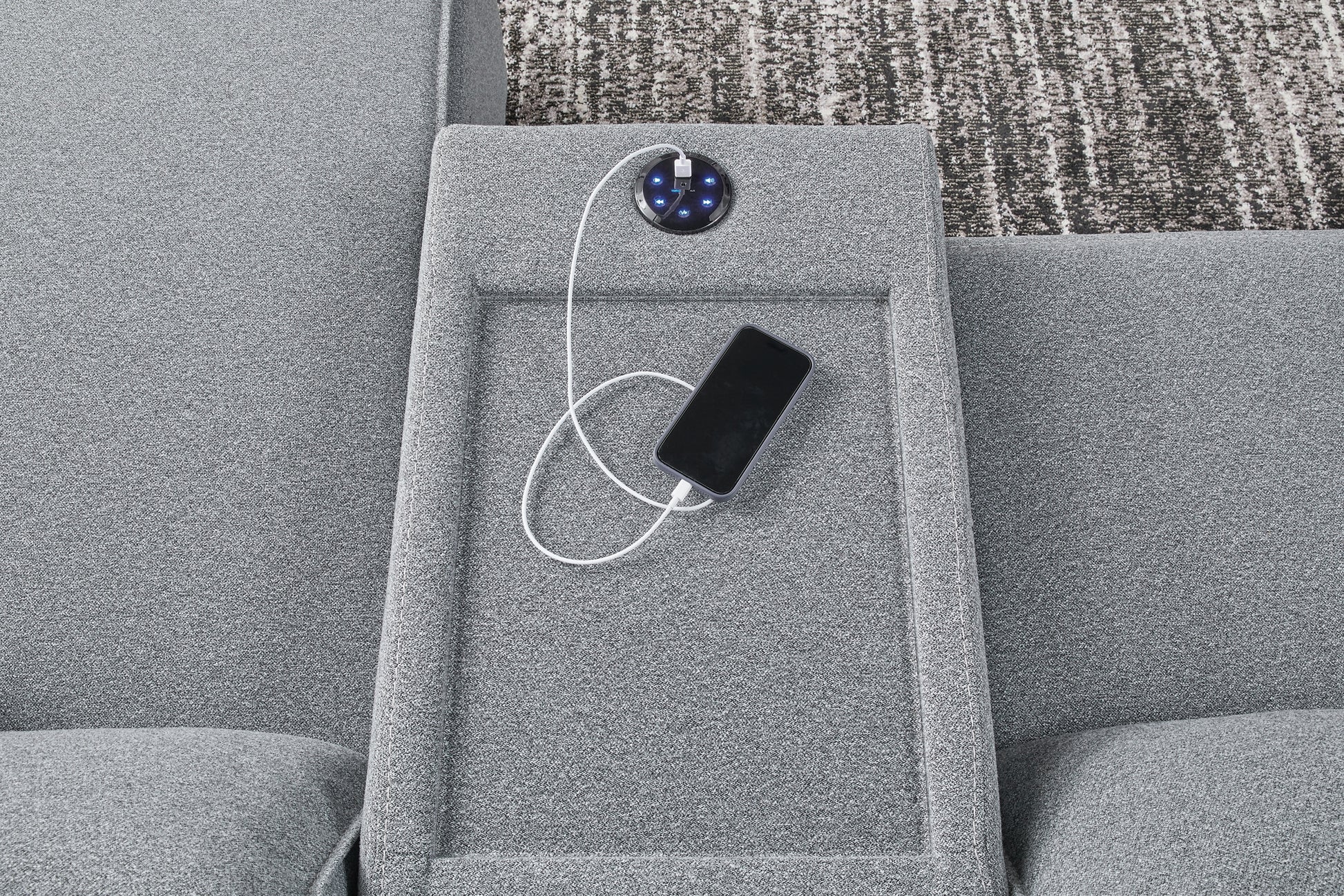 | Details | Includes 6 modular pieces: left-arm facing power recliner, 2 armless chairs, console, wedge and right-arm facing power recliner, "Left-arm" and "right-arm" describe the position of the arm when you face the piece, Versatile modular pieces fit together in a variety of configurations, One-touch power control with adjustable positions, Easy View™ adjustable headrest and zero-draw USB port, Zero-draw technology only consumes power when the USB receptacle is in use, Corner-blocked frame with metal reinforced seat, Attached back and seat cushions; high-quality foam cushions wrapped in poly fiber, Polyester upholstery; Next-Gen Nuvella™ is a performance fabric that is soft, easy to clean, stain-resistant and durable, Clean fabric with mild soap and water, let air dry; for stubborn stains, use a solution of 4 oz. bleach to 28 oz. water, Throw pillows with easy-to-remove zippered covers for machine washing; pillows with soft polyfill, Console with plexiglass top and 2 cup holders, Zero wall recliner design requires minimal space between wall and chair back, Power cord included; UL Listed | |